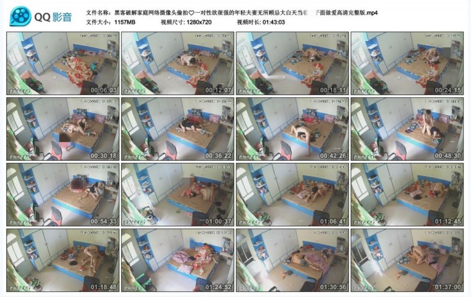 【影片名称】:黑客破解家庭网络摄像头偷拍 一对性欲很强的年轻夫妻无所顾忌大白天当着核子面做爱高清完整版【影片格式】:MP4【影片大小】:1157MB【影片时间】:01:43:03【影片说明】:无码【解压密码】:1024【影片截图】: